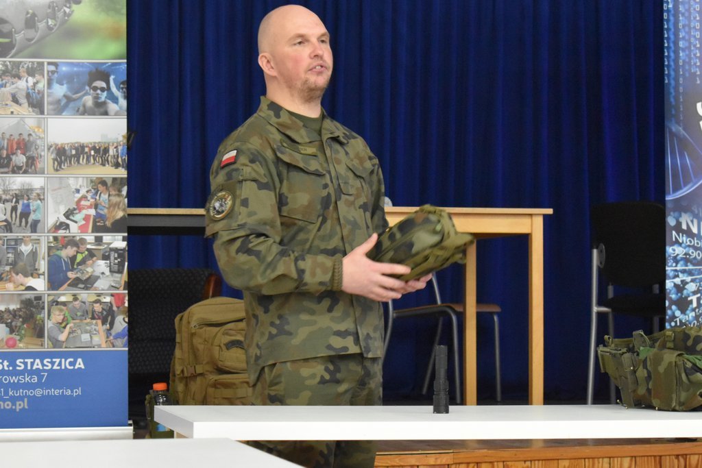1 grudnia w ramach programu Edukacja z wojskiem w naszej szkole gościli żołnierze z Wojsk Obrony Terytorialnej z Kutna. Przeprowadzili zajęcia z zakresu bezpieczeństwa, pomocy medycznej oraz obrony cywilnej. Nasi uczniowie zapoznali się m.in. z zasadami alarmowania, sposobami szukania i wzywania pomocy, podstawami ewakuacji i schronienia, technikami udzielania pomocy czy reagowania w sytuacji kontaktu z podejrzanymi, niezidentyfikowanymi obiektami. Zajęcia prowadzone były w sposób praktyczny z dużym zaangażowaniem uczniów.